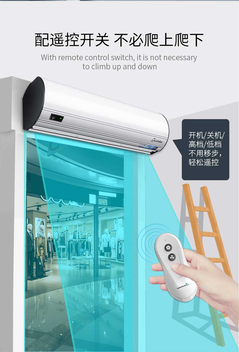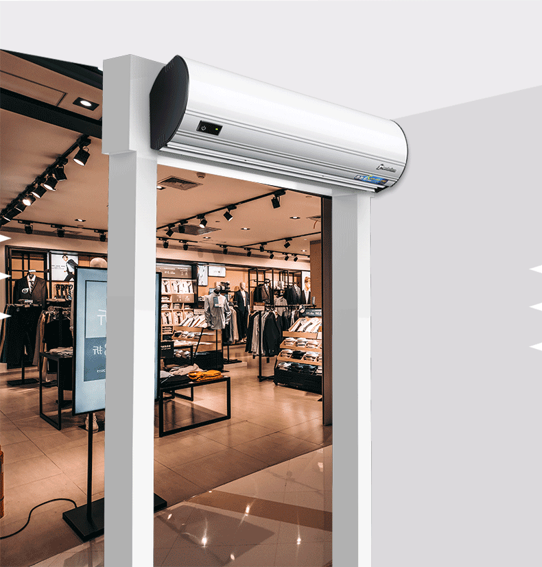 減少室內(nèi)冷氣外流,節(jié)省空調(diào)耗電,適用于需不斷開關(guān)門的餐廳、商店等場所。夏天走進各種開設(shè)冷氣的場所,入口處清涼的強風(fēng)讓顧客頓感涼爽愉悅。