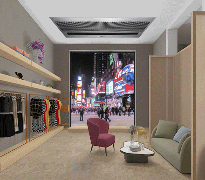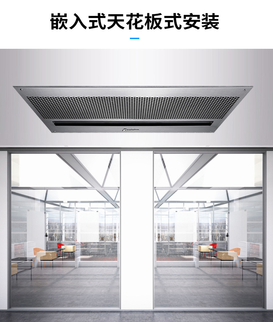 嵌入天花板式或向下吊裝設(shè)計,裝飾美觀,全方位立體送風(fēng);